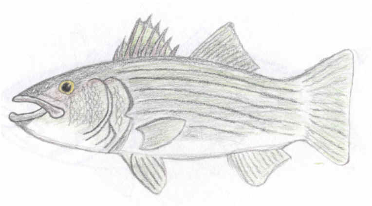 Striped Bass Size/Age: Striped Bass can reach a weight of 78 lbs (which is the world record) but they usually average a weight of 5 to 20 lbs. They normally live 10 to 12 years, however they can be older. Distribution: Along the east coast of the U.S. from the St. Lawrence River down to Florida. Some range from Florida to Texas. The Striped Bass were introduced to the San Francisco area and now range from Washington to California. Habitat: Striped Bass live in both fresh and salt water. They spawn in the fresh water for a small period of time and then migrate back to the salt water. They usually are found around structure in the water such as piers, jetties, and rocks. They are primarily a inshore species and can be caught from the beach. Feeding Habits: Striped Bass mainly feed on small bait fish. They also feed on worms, squid, crabs, and eels. Striped Bass usually feed during the night time hours, but sometimes the daytime. They also feed close to dawn. Angling: When angling you have to visualize yourself as the fish and think like one. Especially when fishing for Striped Bass. Striped Bass for some reason get into very fussy moods and will only feed on one thing for periods of time. You should ask around, asking what they have been feeding on lately and you should use that as your bait. You should use a spinning rod and use what test is right for the weight of the fish your going after. You can use a variety of different rigs (see rigs). Besides baits you can also use a variety of different lures, such as plugs. Look for such structure mentioned above and you'll be fine. If you're not fishing from land and trolling you can use lures, and baits. When trolling you'd probably be better off using lures, such as spoons. Baits are now making a come back with Striped Bass fishing because before they were offered a variety of different lures and some what drifted away from the baits. One of the most popular baits is the worm and when fished make sure you use the whole worm or get the longest you can. Enjoy!!!!!
